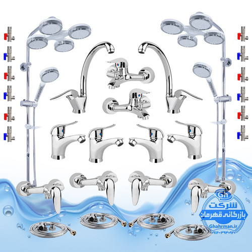 ست ۳۰ عددی شیرآلات برند آیدا صنعت مدل دنیز | سه عدد شیر ظرفشویی + سه عدد شیر روشویی + سه عدد شیر حمام + سه عدد شیر توالت + سه عدد علم دوش یونیورست مدل هلی شاتی + سه عدد شلنگ توالت + سه عدد شلنگ استیل + دوازده عدد شیر پیسوار | کروم براق