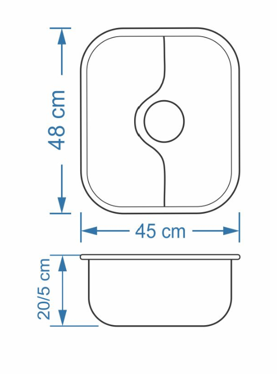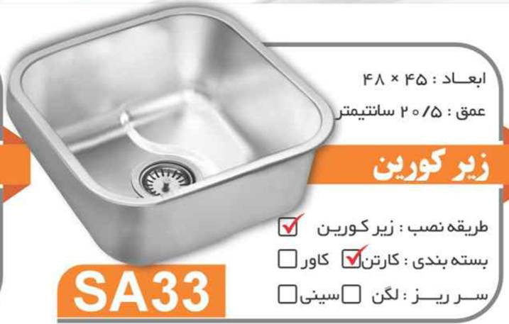 سینک نیمه فانتزی توکار SA33 سایز 48×45 عمق 20/5