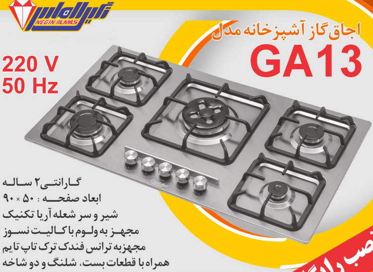 اجاق گاز صفحه استیل نگین الماس کد GA13 ابعاد 50×90