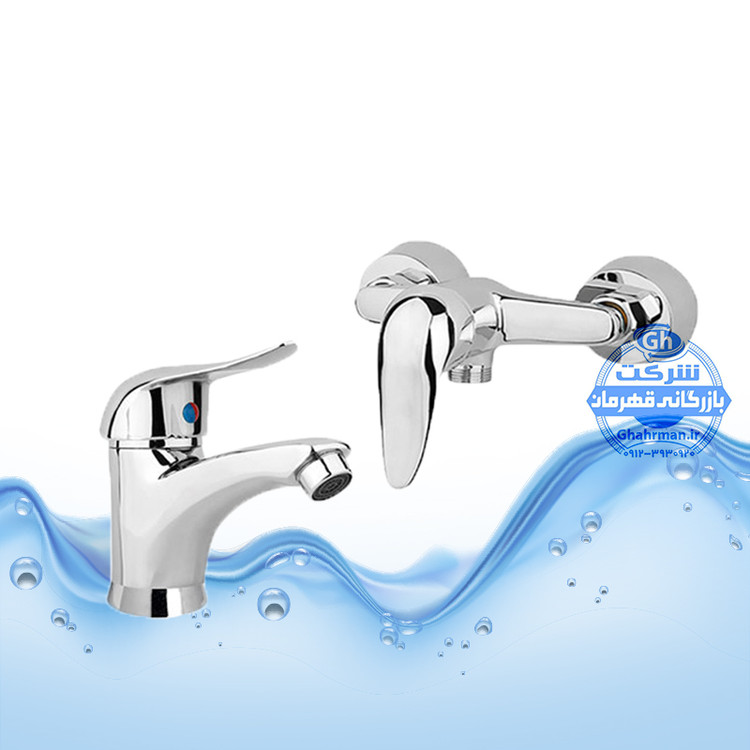 ست ۲ عددی شیر روشویی و شیر توالت اهرمی | کروم براق | شیرآلات برند آیدا صنعت مدل دنیز