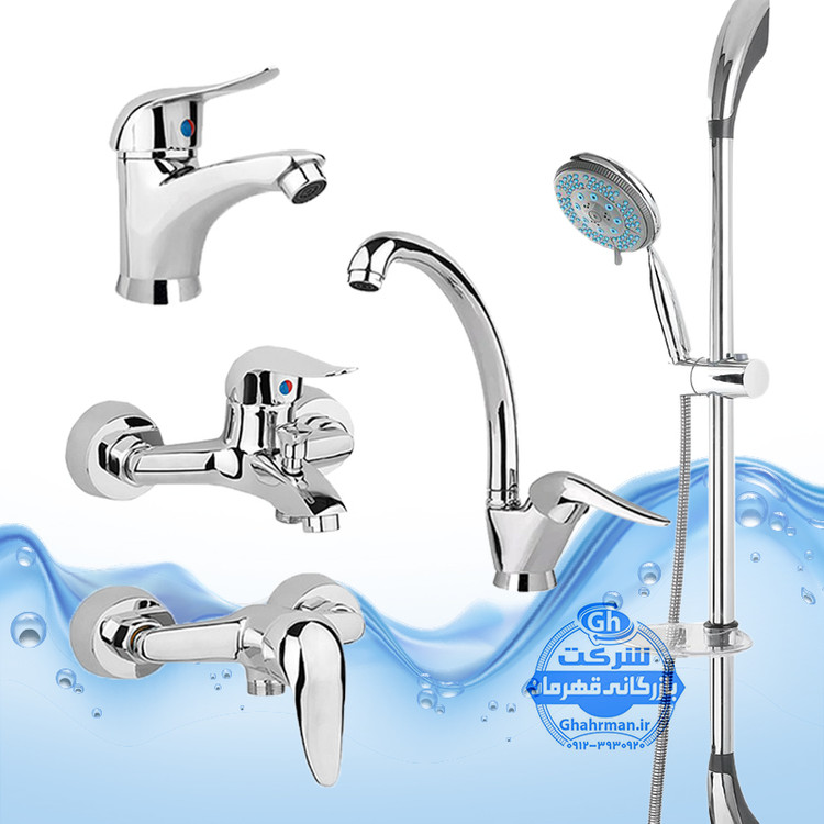 ست ۵ عددی شیرآلات مدل دنیز | شیر روشویی + شیر ظرفشویی + توالت + حمام + علم دوش یونیکا | کروم براق