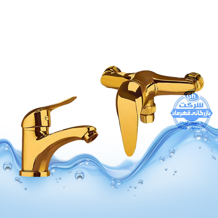 ست ۲ عددی شیر روشویی و شیر توالت اهرمی | طلایی براق | شیرآلات برند آیدا صنعت مدل دنیز