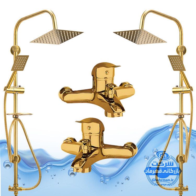 ست ۴ عددی دوش حمام با علم یونیورست صفحه استیل شیرآلات برند آیدا صنعت مدل دنیز | طلایی براق