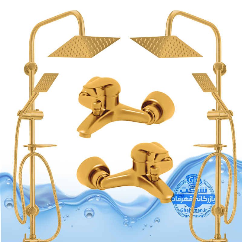 ست ۴ عددی دوش حمام با علم یونیورست صفحه استیل شیرآلات برند آیدا صنعت مدل دنیز | طلایی مات