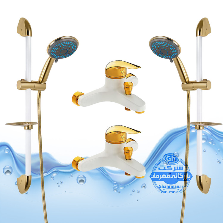 ست ۴ عددی دوش حمام با علم یونیورست یونیکا شیرآلات برند آیدا صنعت مدل قهرمان | سفید طلایی